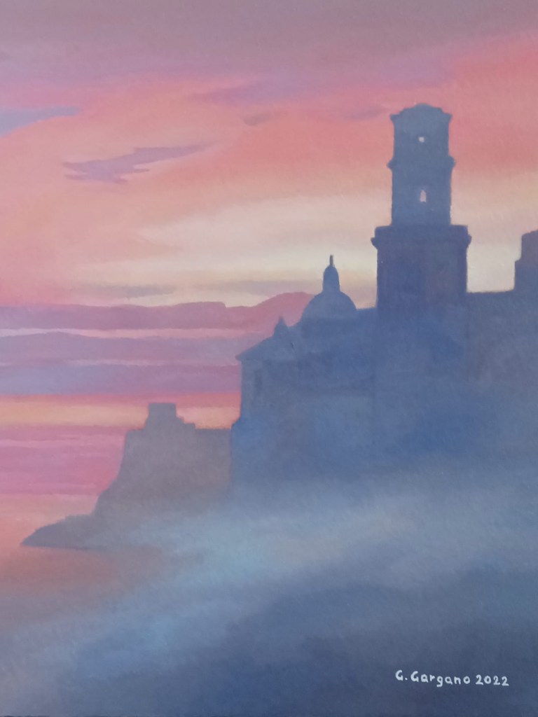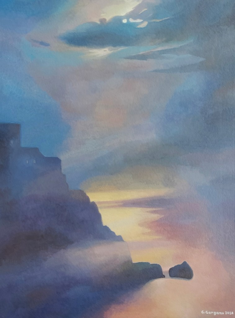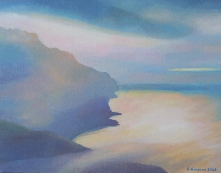La Costiera Amalfitana offre tanti scorci suggestivi che incantano numerosi turisti e sorprendono ogni giorno anche chi ci ha vissuto da sempre, come me. Il mio obiettivo, tuttavia, non è saper cogliere con precisione realistica la bellezza di un panorama perfetto, ma “andare oltre”, provando a trasfigurarlo in un “paesaggio dell’anima”, sospeso tra sogno e realtà. Per farlo, ho deciso di utilizzare tecniche diverse (dal pastello alla grafica fino all’olio su tela), il cui scopo comune è raggiungere la leggerezza, quasi l’impalpabilità di qualcosa che gradualmente sta perdendo la propria materialità, per sconfinare in una dimensione onirica, ai limiti del surreale…